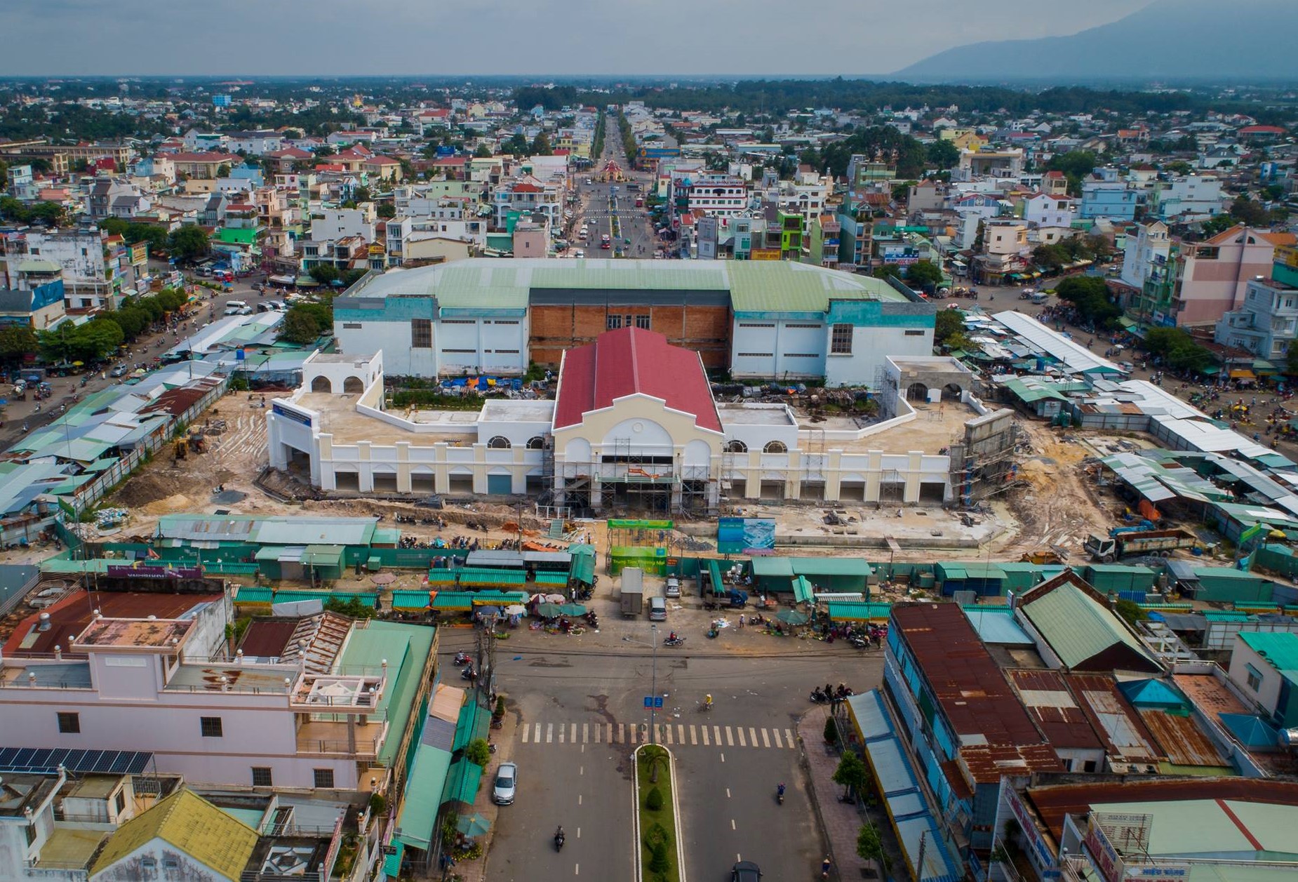 Chợ Long Hoa nhìn từ trên cao (ảnh: Nguyễn Huỳnh Đông, chụp tháng 9.2018).