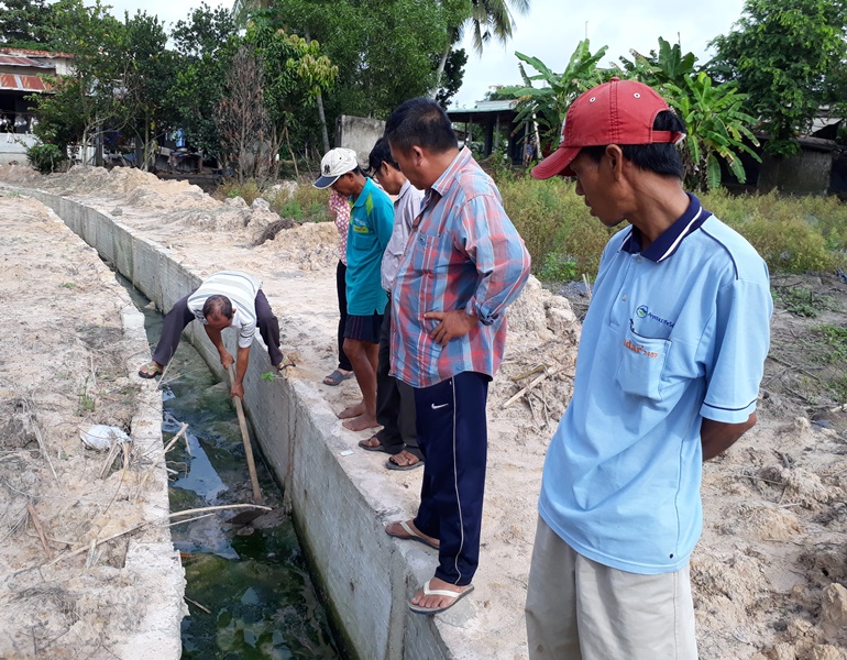 Ban Giám sát đầu tư cộng đồng xã Truông Mít (huyện Dương Minh Châu) thực hiện công việc giám sát tại công trình xây dựng.