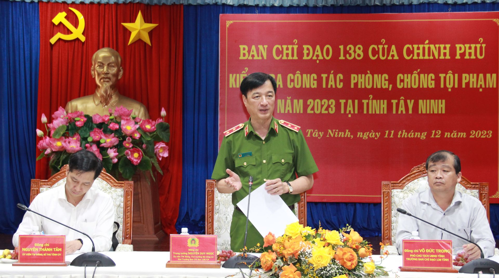 Trung tướng Nguyễn Duy Ngọc- Thứ trưởng Bộ Công an phát biểu tại buổi làm việc.