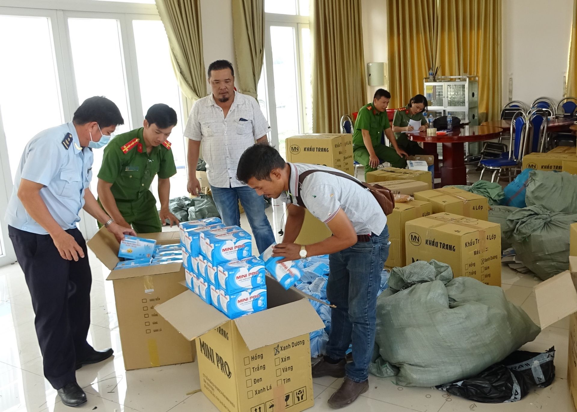 Lực lượng chức năng phát hiện, thu giữ 187.195 khẩu trang y tế kháng khuẩn và 6.400 khẩu trang vải loại dành cho trẻ em, tất cả đều không có hoá đơn chứng từ.