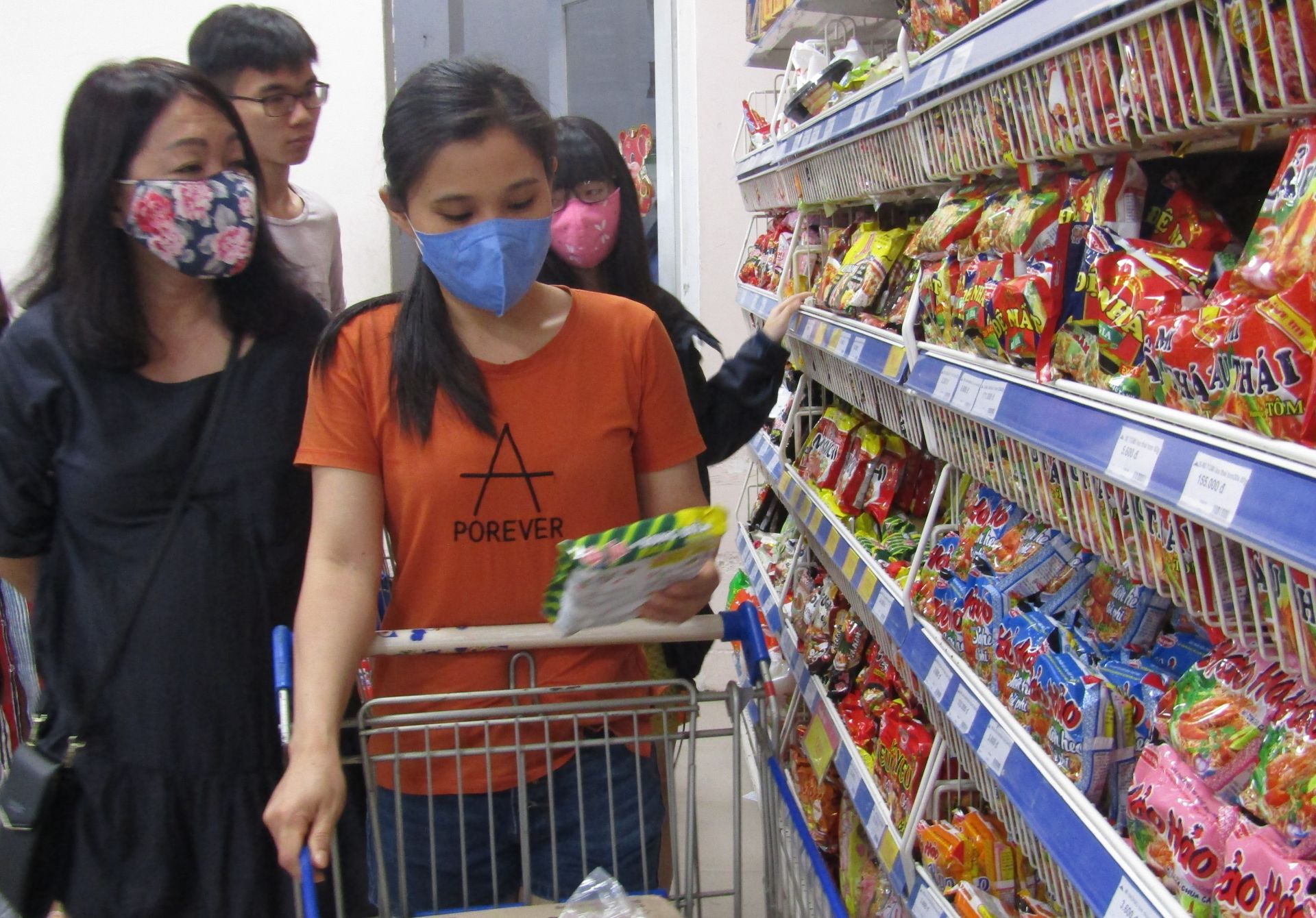 Co.opMart Tây Ninh bảo đảm cung cấp đủ hàng hoá cho người dân. Trong ảnh, gian hàng mì gói, phở gói... tấp nập người mua. Ảnh: Ngọc Bích