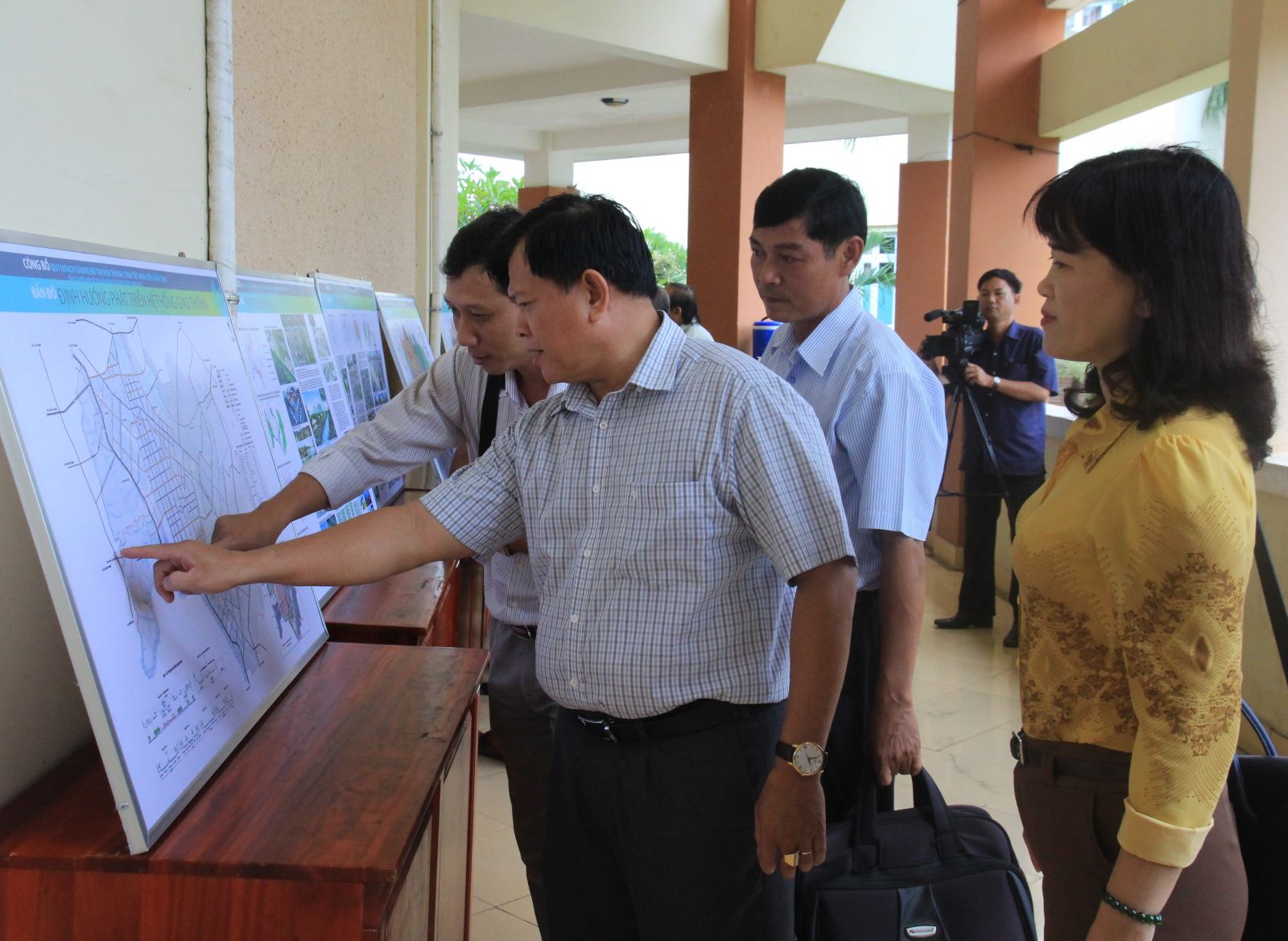 Cán bộ, lãnh đạo huyện Hoà Thành xem các bản thiết kế quy hoạch đô thị huyện.