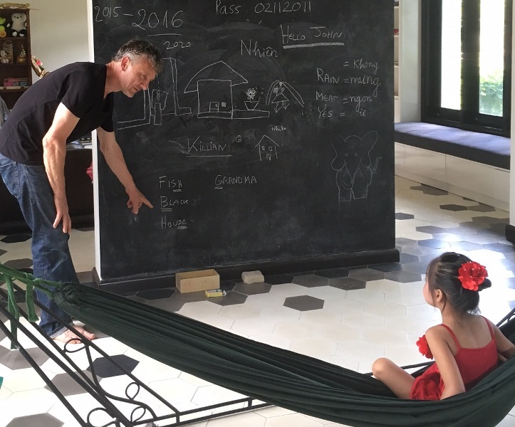 Khách nước ngoài dạy tiếng Anh cho con gái Hoàng Anh Phương. Ảnh: FB HAP