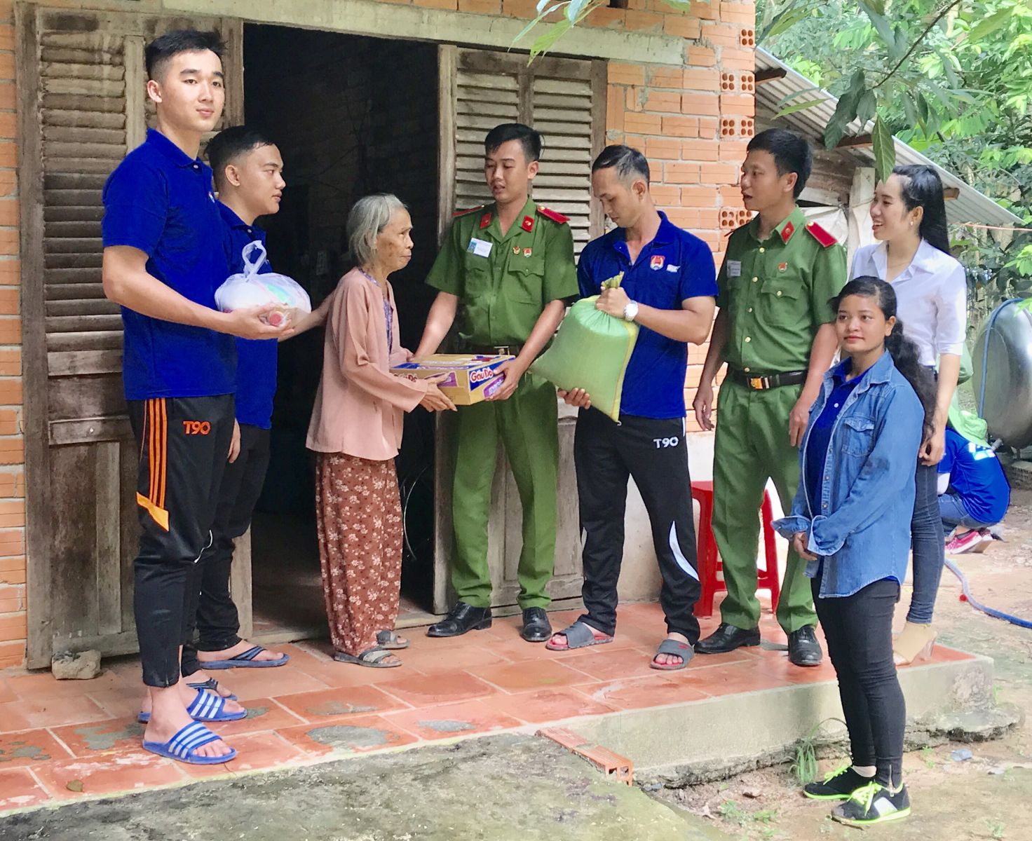 Tặng quà cho người già neo đơn.