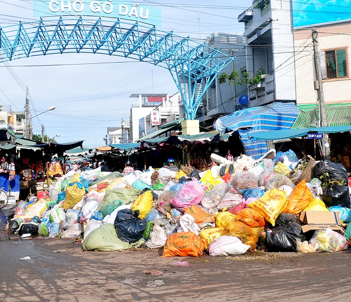 Rác trước chợ Gò Dầu trong những ngày căng thẳng.