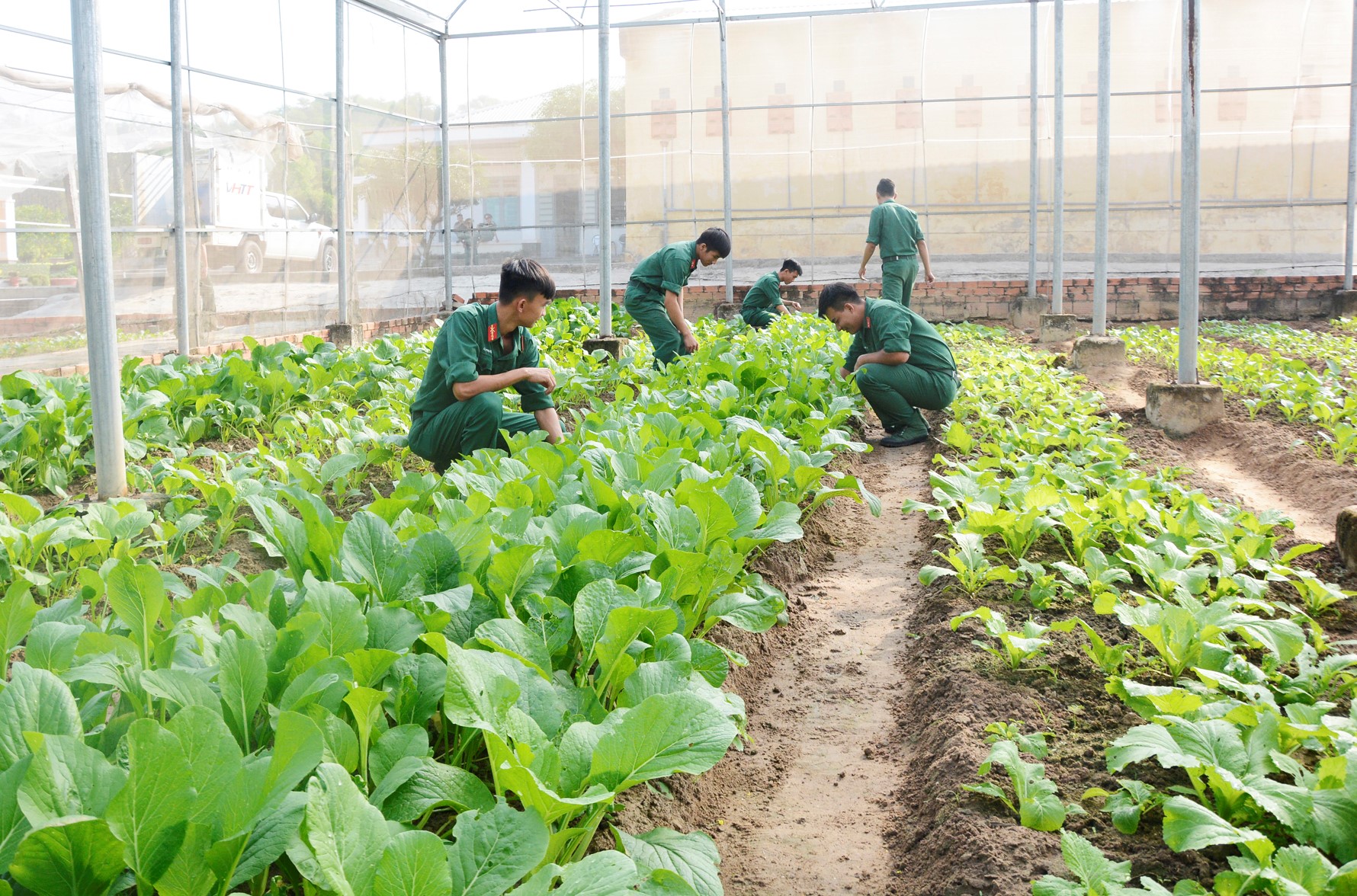 CBCS Đại đội Bộ binh 105 (Ban CHQS Tân Biên) chăm sóc vườn rau.
