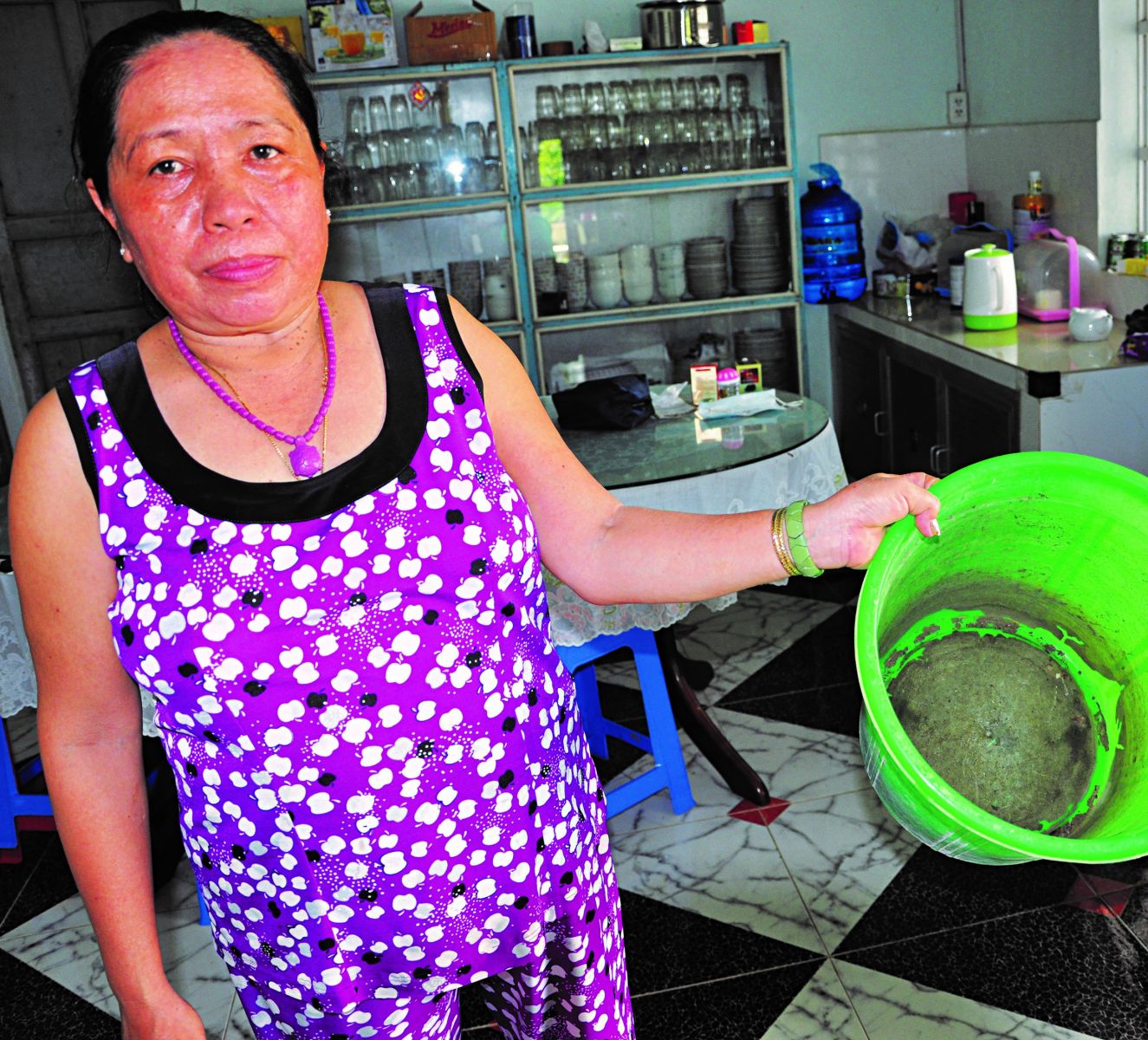 Thùng nước bị đóng cặn của gia đình ông Ðỗ Anh Dũng.
