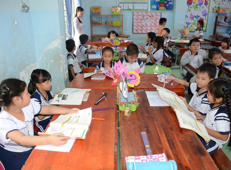 Lớp học theo mô hình VNEN tại Trường tiểu học Thị trấn A, huyện Dương Minh Châu.