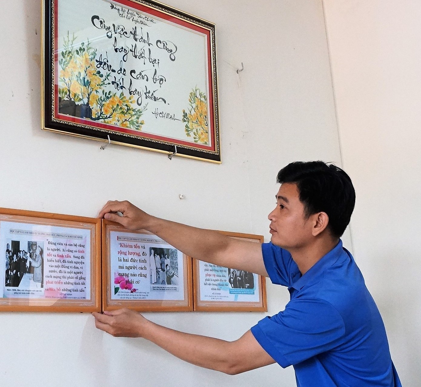 Ảnh và lời dạy của Bác được treo trong phòng làm việc của Huyện đoàn Tân Châu. Ảnh: Đại Dương