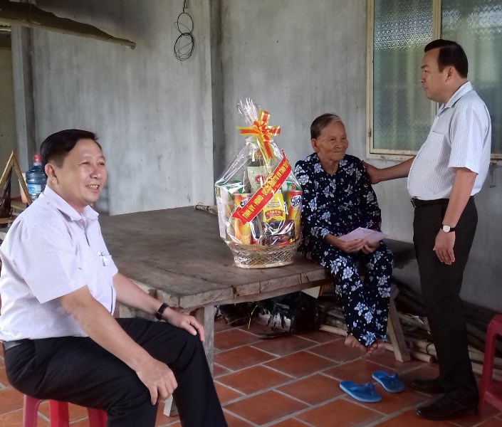 Ông Phạm Hùng Thái- Uỷ viên Ban Thường vụ, Trưởng Ban Tuyên giáo Tỉnh uỷ thăm hỏi và tặng quà cho gia đình bà Nguyễn Thị Thắm là vợ liệt sĩ, ngụ ấp Long Thịnh, xã Long Khánh.