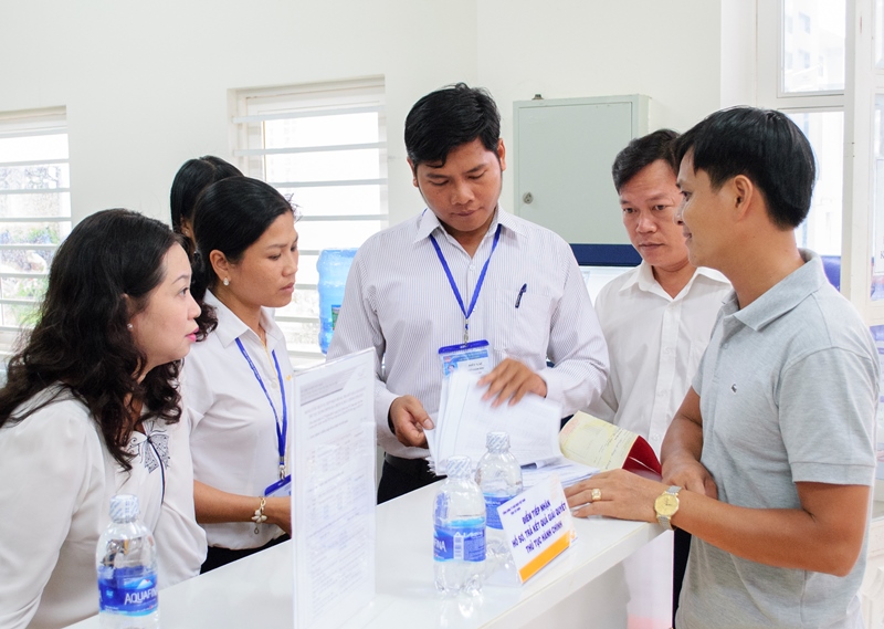 Sắp xếp lại bộ máy hành chính để phục vụ người dân tốt hơn. Trong ảnh: Hướng dẫn người dân tham gia dịch vụ tiếp nhận hồ sơ, trả kết quả giải quyết thủ tục hành chính qua bưu điện. Ảnh: Công Điều