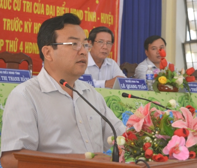 Ông Phạm Hùng Thái- Trưởng Ban Tuyên giáo Tỉnh uỷ phát biểu tại tiếp xúc cử tri xã Tân Hà (huyện Tân Châu).