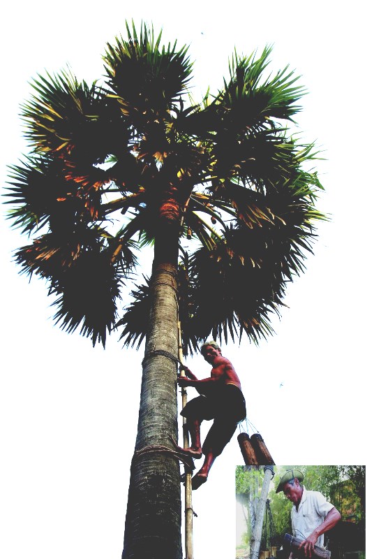 Ông Quo Bét (52 tuổi) mỗi sáng lấy được khoảng 20 lít nước thốt nốt mang đi bán. Để vị nước thốt nốt ngọt và trong, ông phải leo lên lấy nước 2 lần vào sáng sớm và buổi chiều.