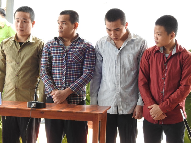 Các bị cáo tại phiên toà (từ trái qua: Phát, Lợi, Anh, Thi).