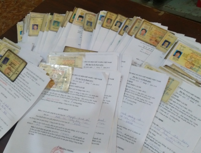 Theo Phòng Cảnh sát giao thông Công an tỉnh, từ năm 2012 đến tháng 5.2017, tại phòng hiện còn lưu giữ 1.256 giấy phép lái xe mô tô, ô tô các loại của người vi phạm Luật Giao thông nhưng không chấp hành đóng phạt theo quy định để được trả lại giấy phép lái xe.