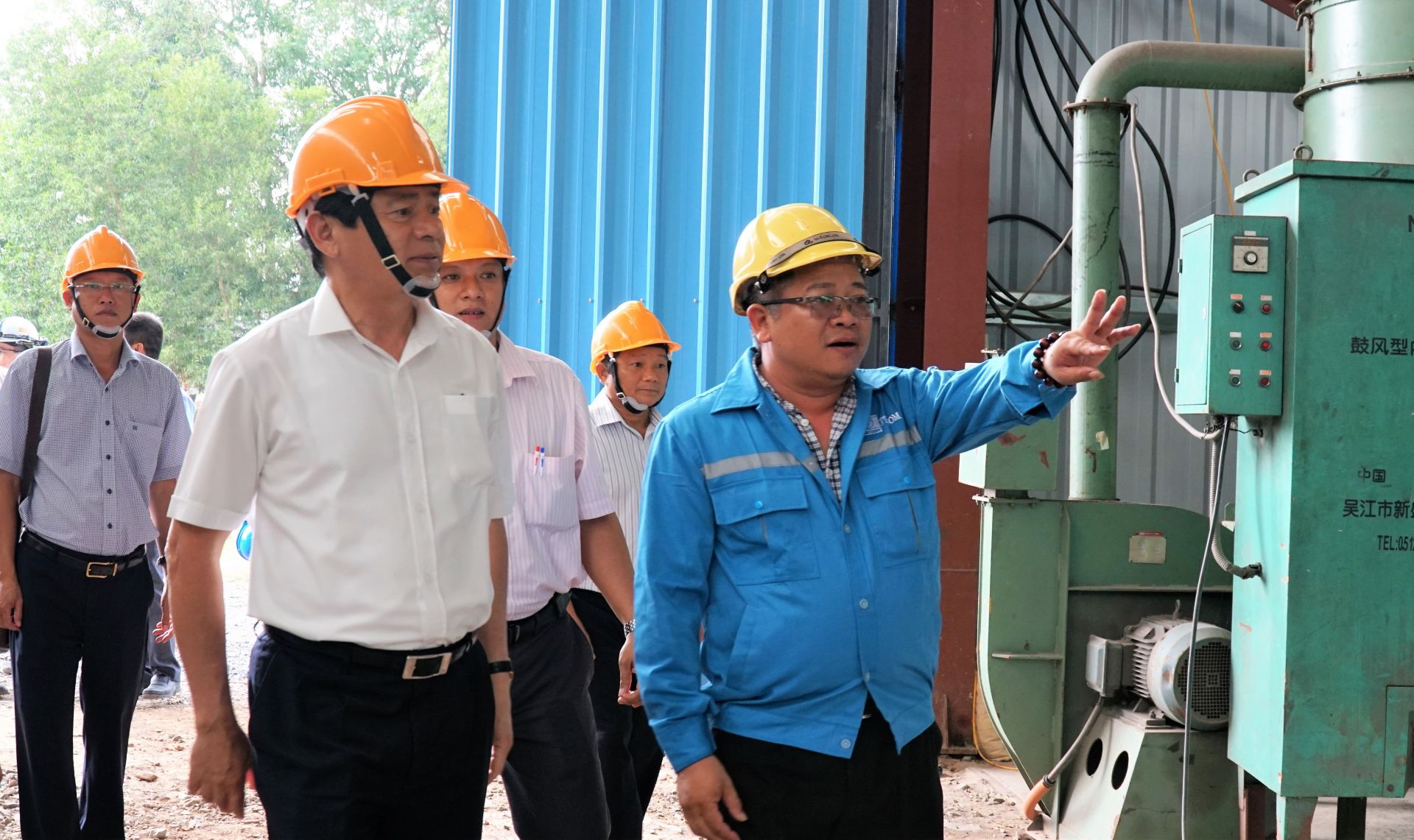 Bí thư Tỉnh uỷ Phạm Viết Thanh khảo sát thực tế xưởng gia công chế tạo ống thép thuộc Dự án tưới tiêu khu vực phía Tây sông Vàm Cỏ Đông (tại huyện Châu Thành).