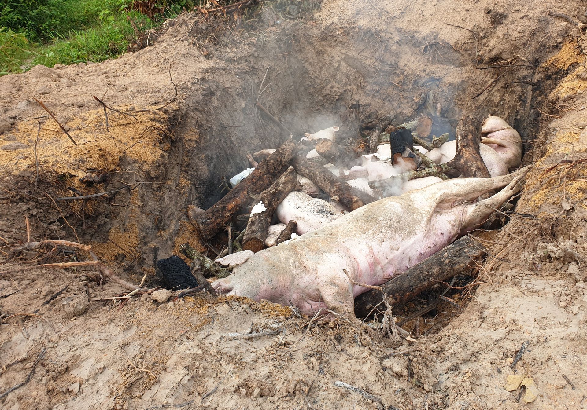 Heo được tiêu huỷ không hết, bốc mùi, khiến người dân bức xúc.