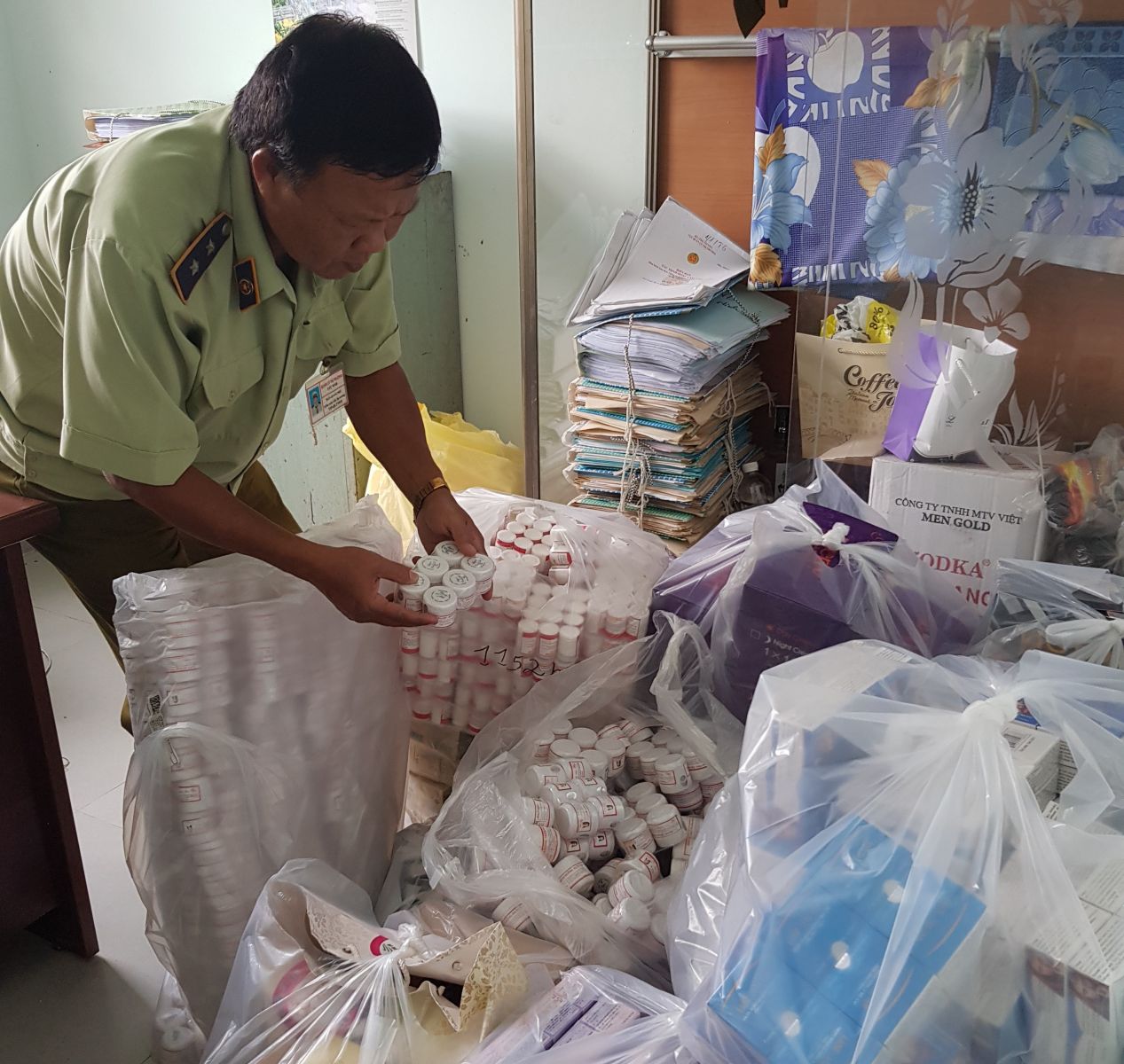 Mỹ phẩm không rõ nguồn gốc, xuất xứ được tạm giữ tại Ðội Quản lý thị trường số 3, huyện Hoà Thành.
