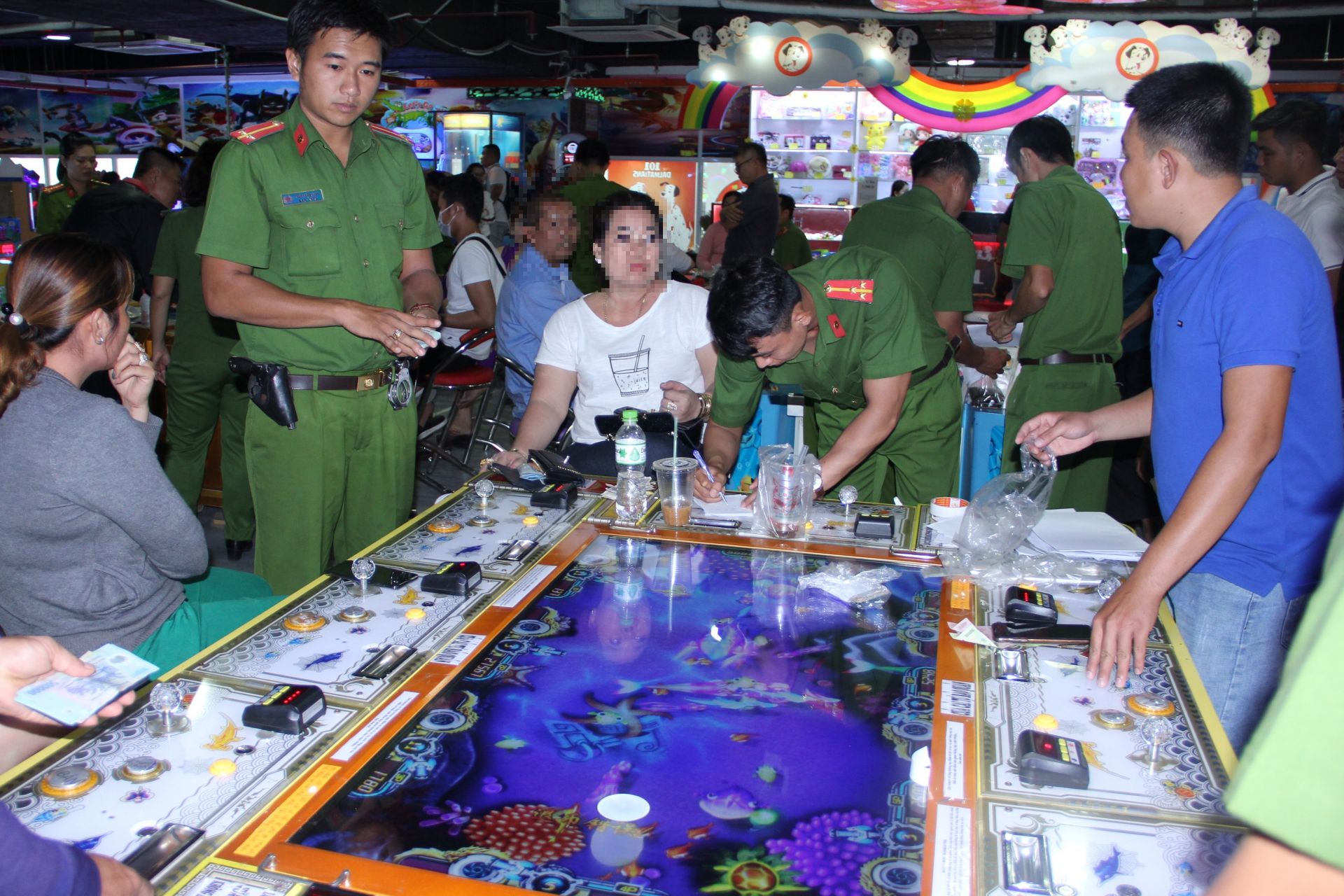 Chiều 17.5, Công an thành phố Tây Ninh ập vào tầng 2 siêu thị Auchan (phường 2, TP Tây Ninh), bắt quả tang nhiều nam nữ thanh niên có hành vi tổ chức đánh bạc và đánh bạc bằng hình thức game bắn cá, bắn thú ăn tiền.