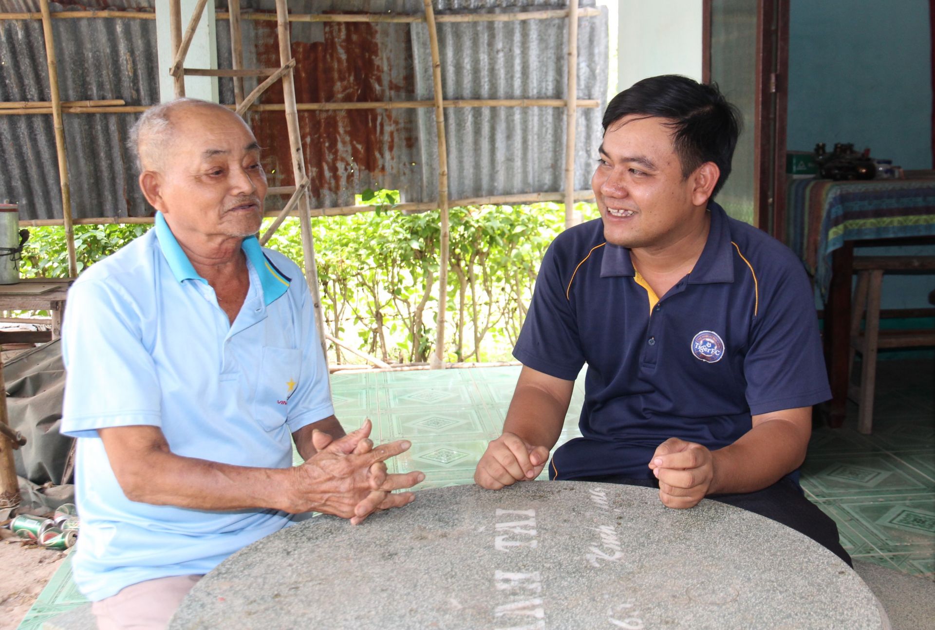 Ông Nguyễn Văn Xuyên (bên phải)- Trưởng ấp 3, xã Phước Vinh, huyện Châu Thành.