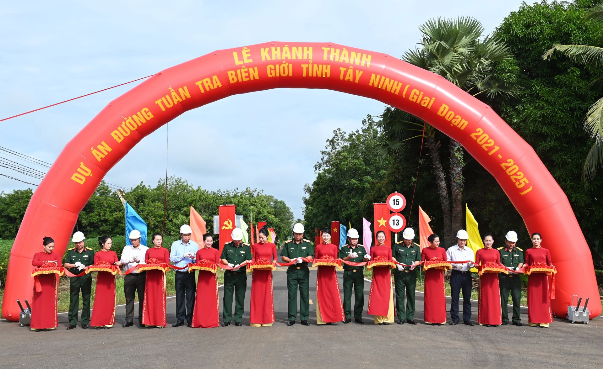 Các đại biểu thực hiện nghi thức cắt băng khánh thành công trình Dự án đường tuần tra biên giới Tây Ninh, giai đoạn 2021-2025.