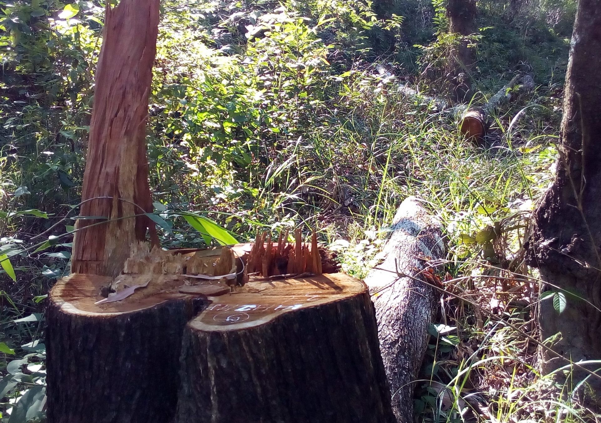 Theo ghi nhận bước đầu, tức chưa khảo sát hết toàn bộ diện tích thực tế, nếu căn cứ vào thông tin về thời gian được đánh dấu trên các gốc cây, thì năm 2018 số cây rừng trồng bị cưa trộm tại tiểu khu 56, 57, 58 là hơn 50 cây, một con số đáng lo ngại.