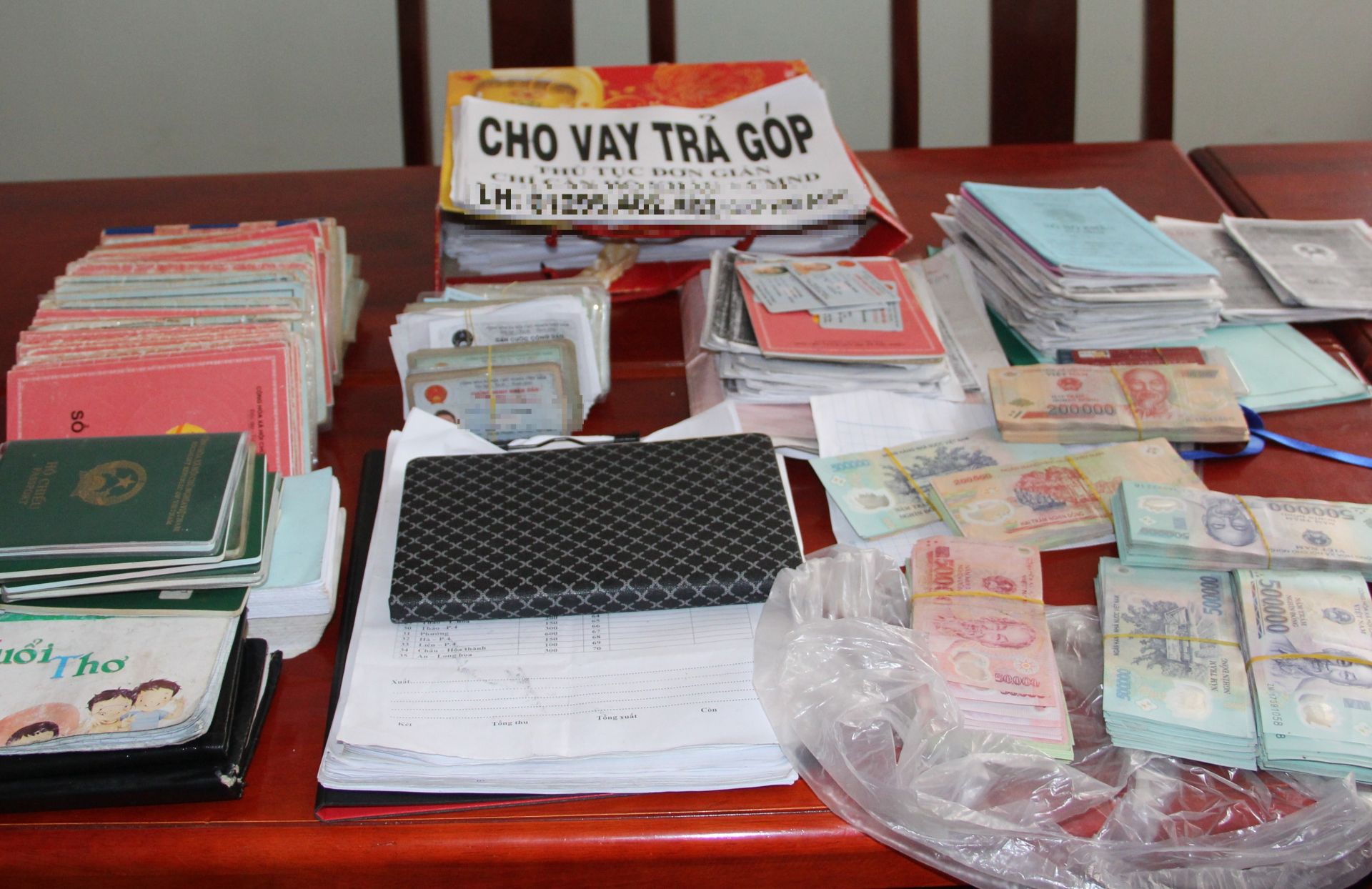 Tang vật thu giữ của nhóm đối tượng cho vay lãi nặng. Ảnh: Nhất Minh