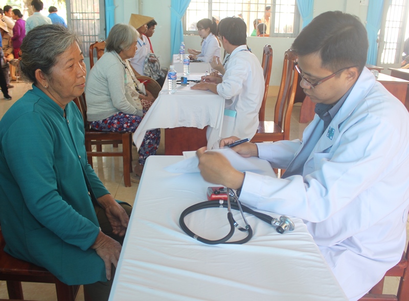 Khám bệnh, cấp thuốc và tặng quà cho người dân.