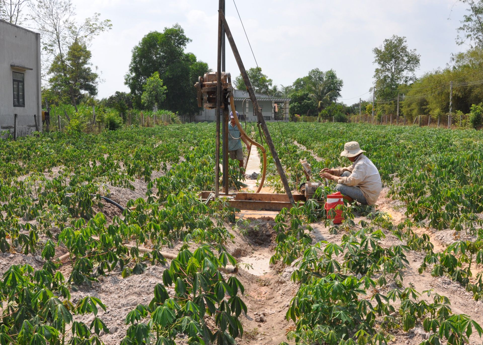 Người dân phải khoan giếng mới để tìm nước tưới.