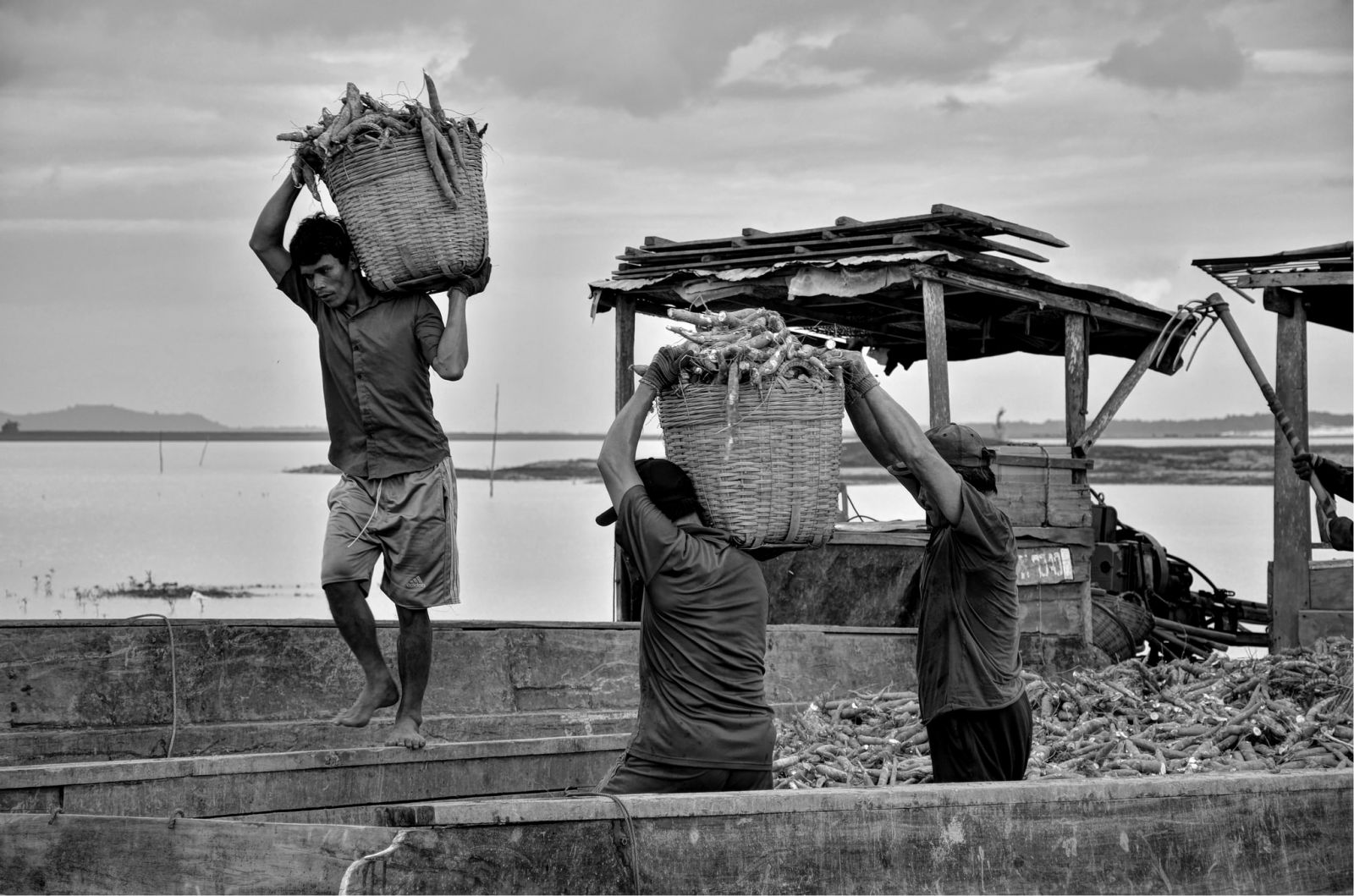 Vận chuyển mì thu hoạch ở đảo Nhím, lòng hồ Dầu Tiếng. Ảnh: Ð.H.T