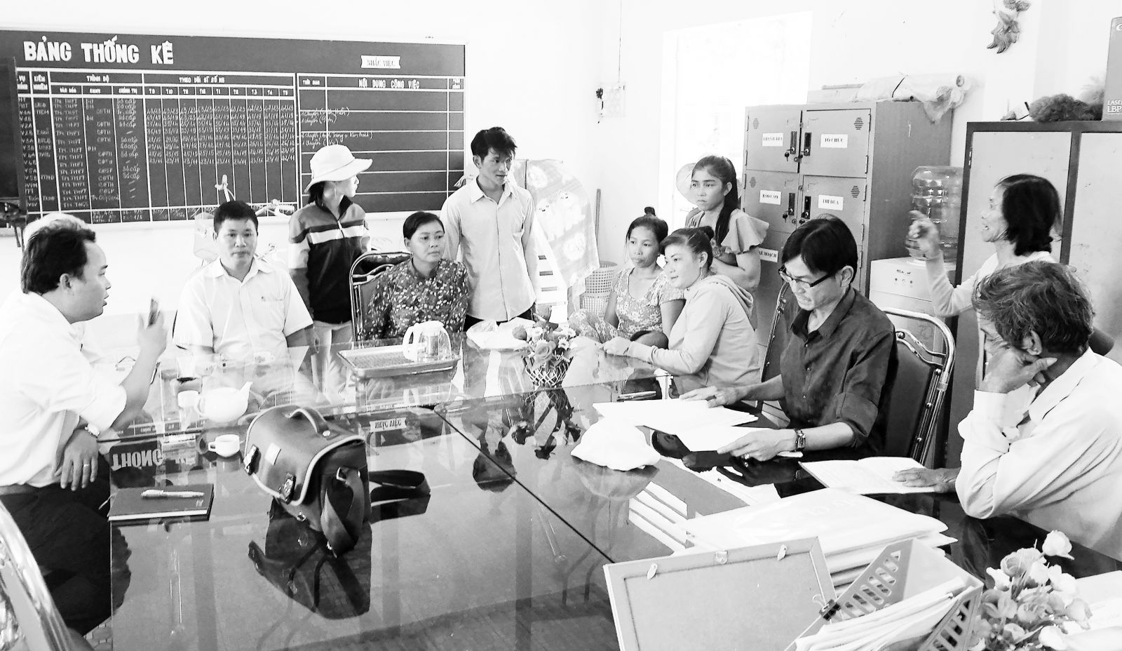 Ðông đảo phụ huynh đến gặp Ban Giám hiệu Trường TH Ðồng Kèn để nộp hồ sơ, điều chỉnh tên tuổi, năm sinh của các cô, cậu học trò mới.