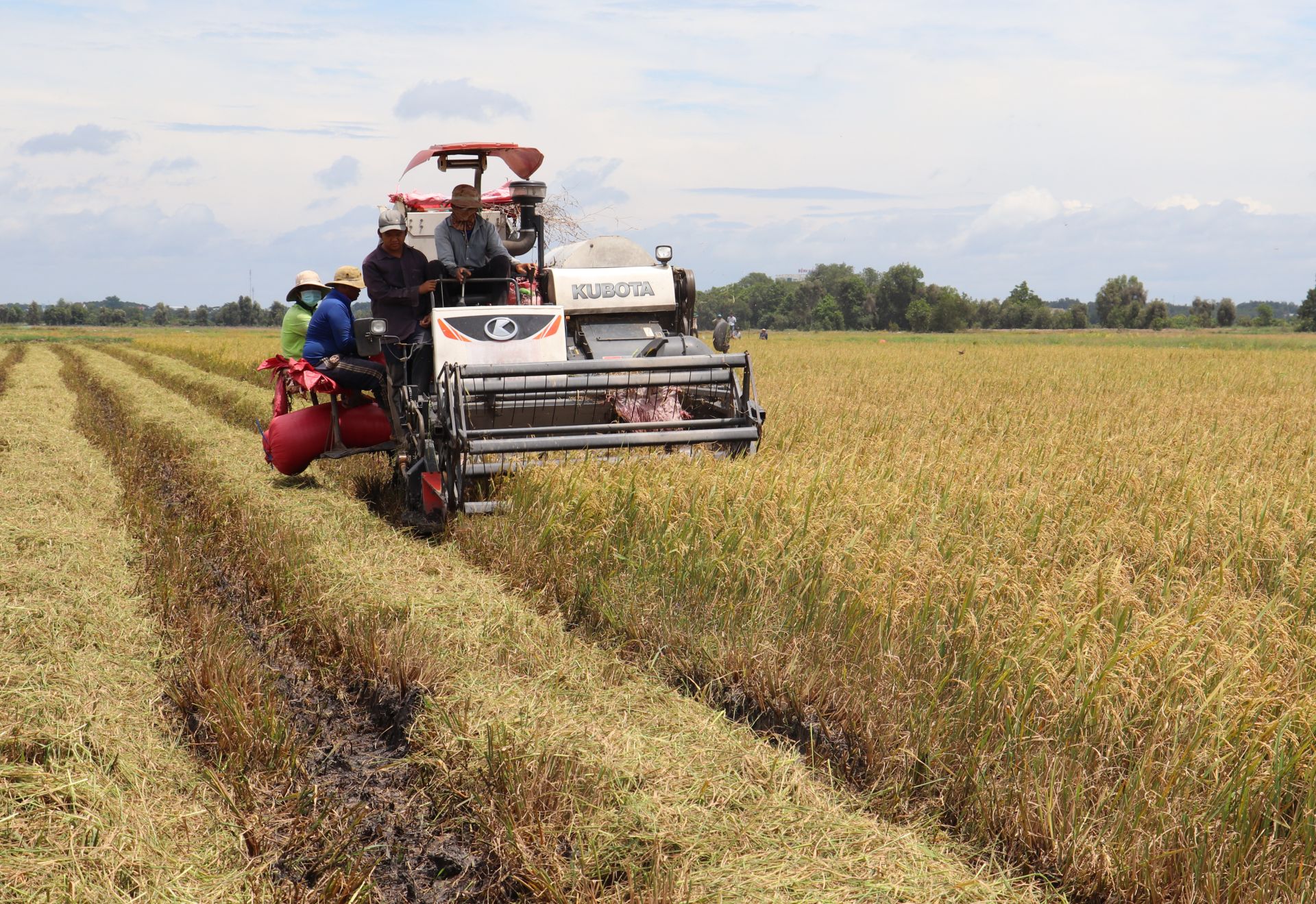 Nông dân thu hoạch lúa.