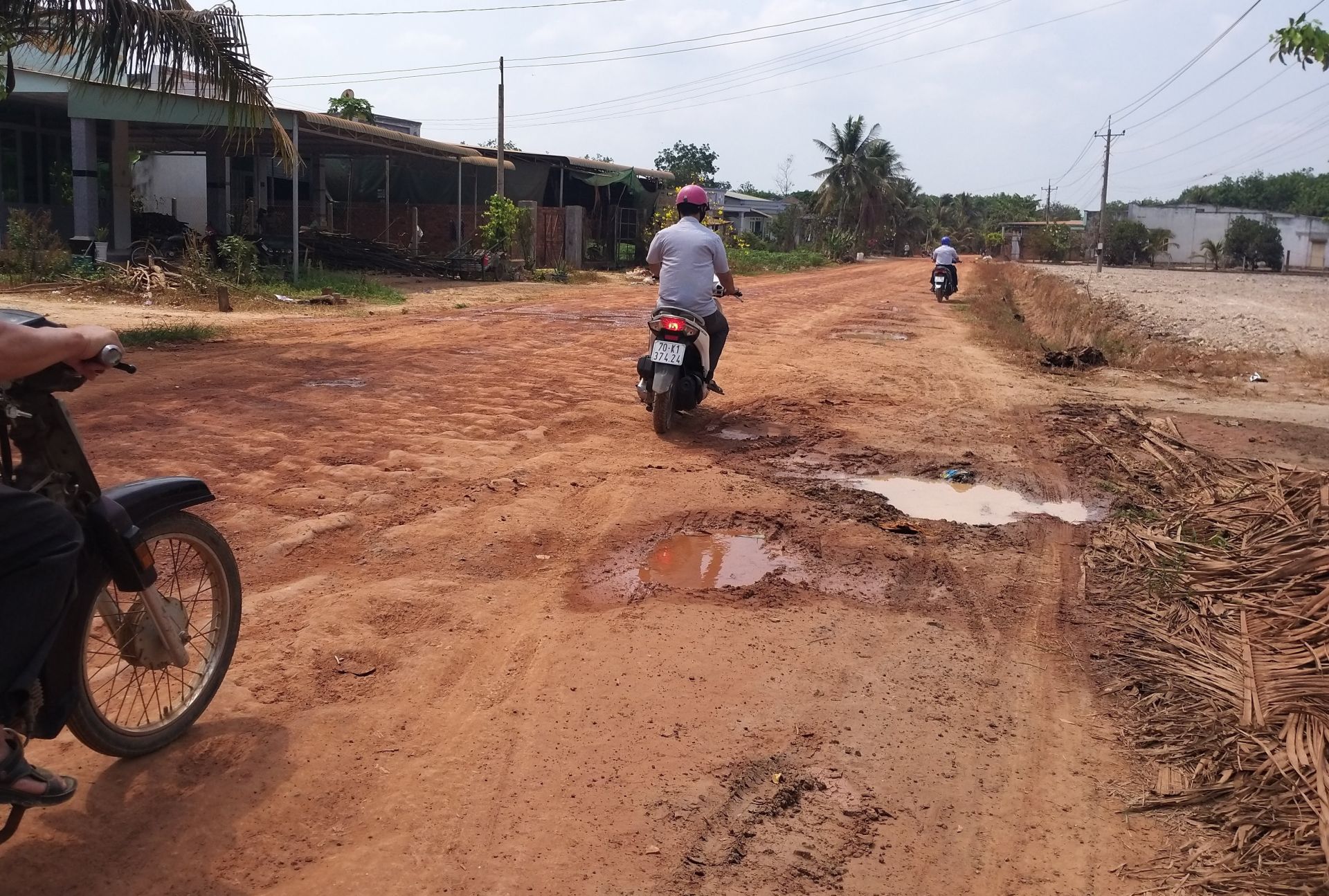 Mặt đường 23 đầy “mắt me” và ổ gà, gây khó khăn cho người dân đi lại.