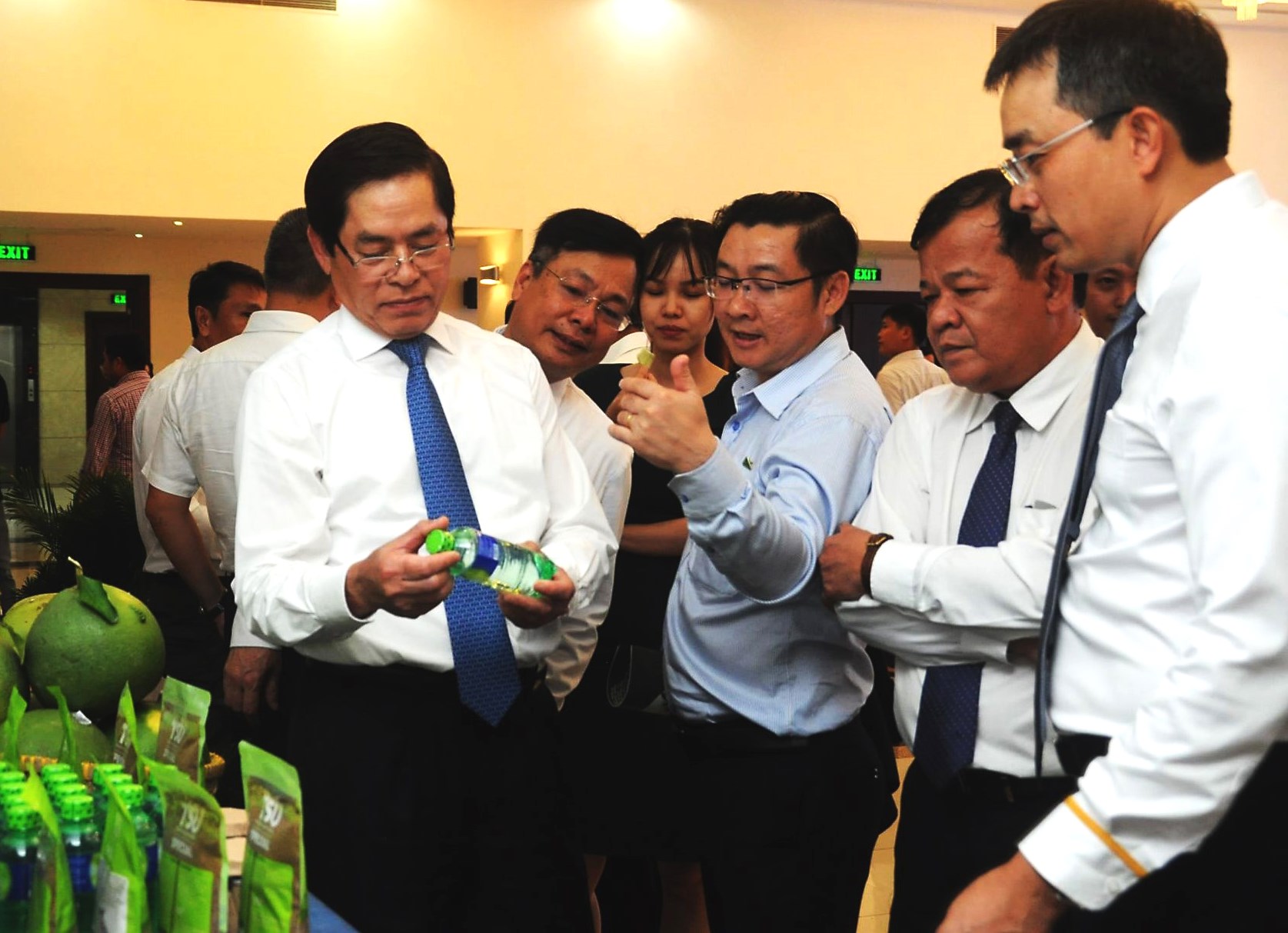 Bí thư Tỉnh uỷ Phạm Viết Thanh tham quan gian hàng nông nghiệp tiêu biểu tại lễ ký kết hợp tác với Vietnam Airlines. Ảnh: Hữu Thiện