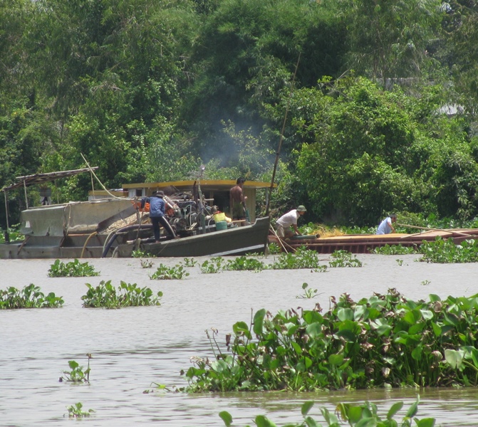 Khai thác cát ở sông Vàm Cỏ Đông.