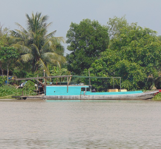 Có ai ngờ chiếc ghe cỡ trung bình đang chầm chậm ngược dòng kia lại là một “sát thủ” của dòng sông. Dân Bến Đình bảo đấy là chiếc ghe cào, đang đánh bắt cá theo kiểu tận diệt các loài thuỷ sản. Hiện ở đoạn sông từ Trường Đông trở xuống Bến Kéo, Long Thành Nam có 4-5 chiếc cỡ này. Ghe gỗ, có buồng lái sơn xanh và mũi đỏ vẽ hai con mắt tròn thô lố. Chúng chỉ khác thuyền ghe khác là không biển số.