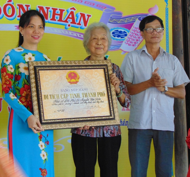 Lãnh đạo Sở VH,TT&DL cùng UBND Thành phố trao bằng Di tích cho chủ nhà.