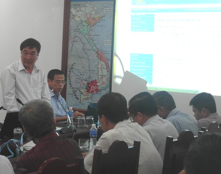 Lãnh đạo Đài Khí tượng thuỷ văn tỉnh trình bày dự báo về cơn bão số 16 tại cuộc họp.