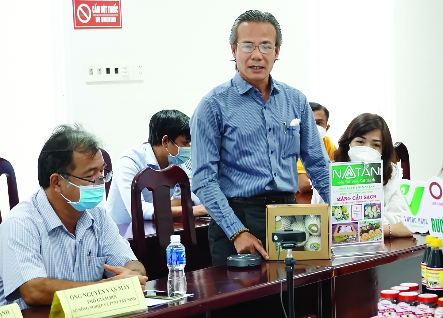 Đại diện doanh nghiệp giới thiệu về sản phẩm chủ lực của tỉnh Tây Ninh.
