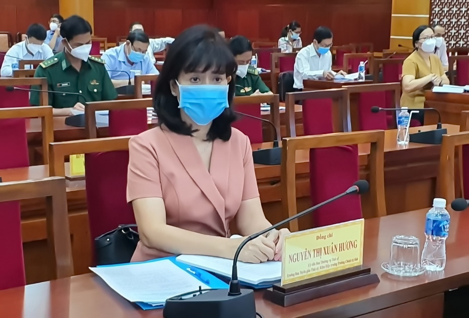 Bà Nguyễn Thị Xuân Hương- Trưởng Ban Tuyên giáo Tỉnh uỷ dự hội nghị điểm cầu Tây Ninh. Ảnh Đức Tiến