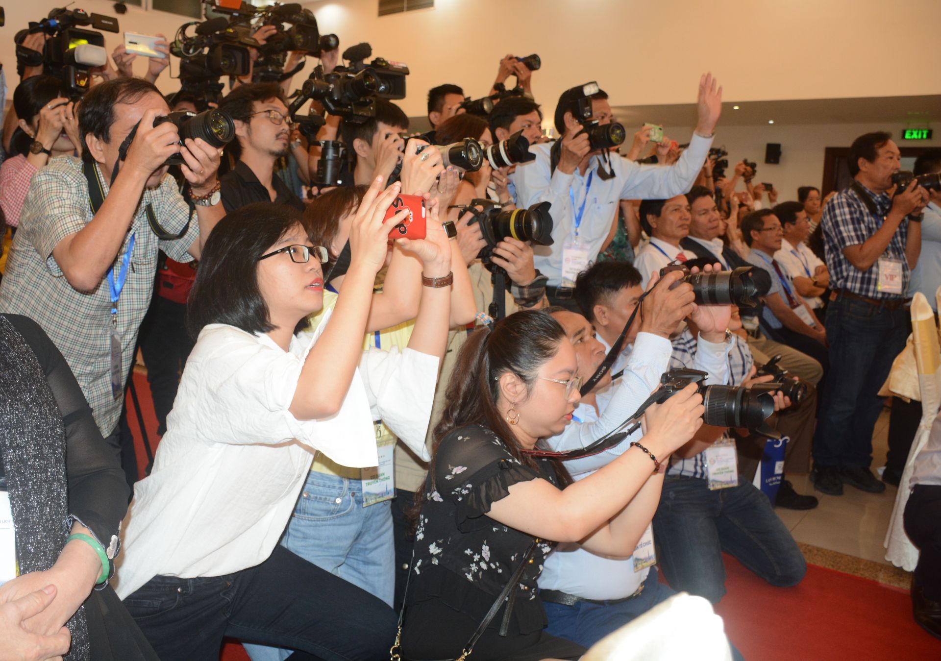 Phóng viên báo chí đưa tin tại hội nghị bàn về liên kết vùng du lịch Đông Nam bộ tại Tây Ninh (ảnh chụp ngày 27.6.2020)