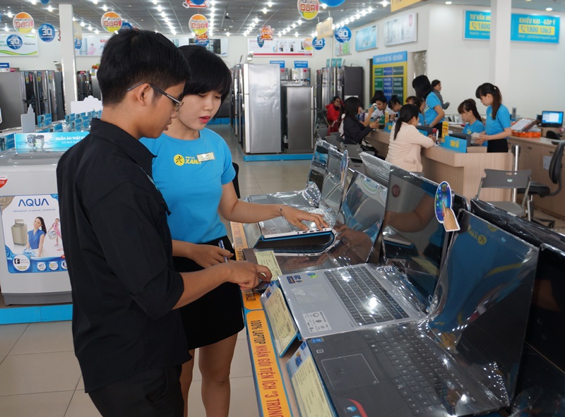 Khách hàng mua hàng hoá tại Ðiện máy Xanh. Ảnh: Thanh Nhi