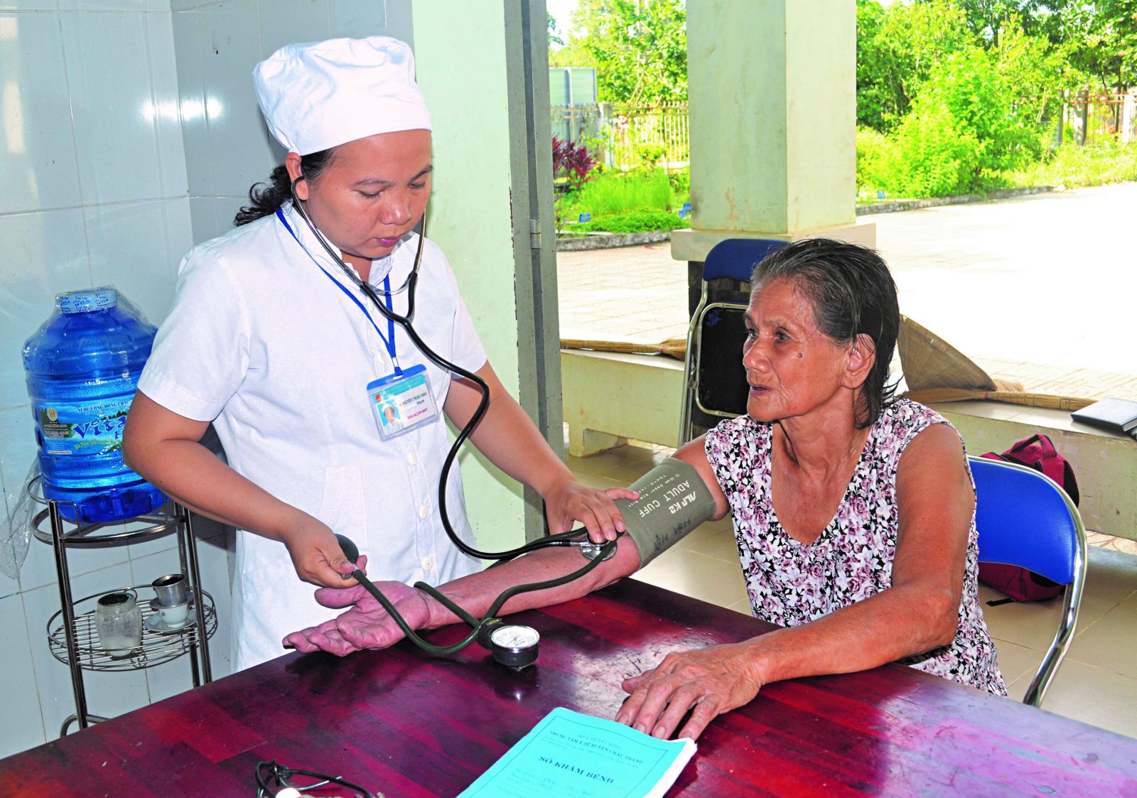 Người dân đến KCB BHYT tại TYT xã Hoà Hội (huyện Châu Thành).