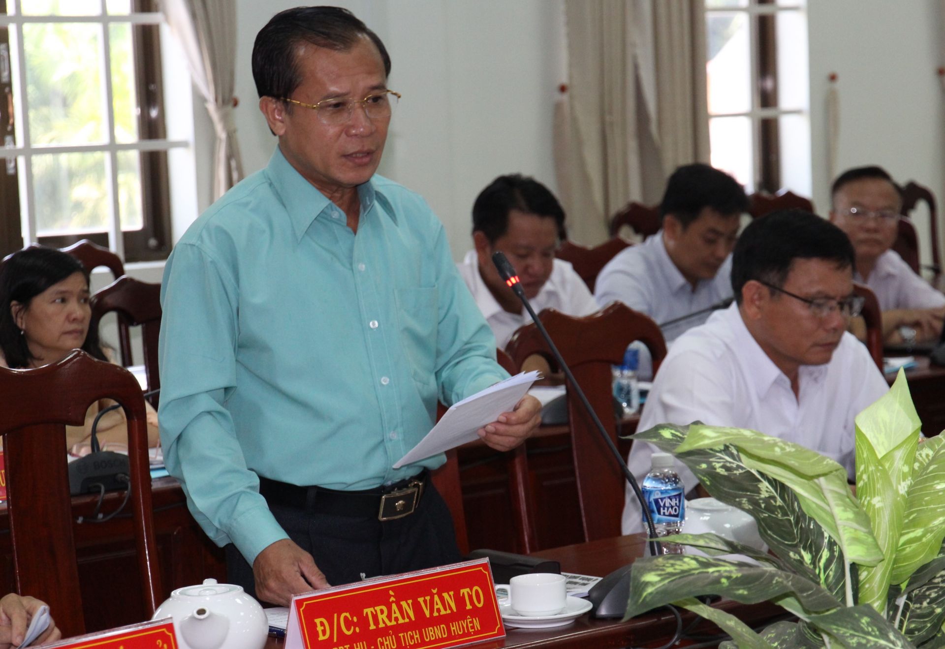 Chủ tịch UBND huyện Trần Văn To trao đổi với đoàn về tình hình kinh tế - xã hội của huyện Dương Minh Châu.