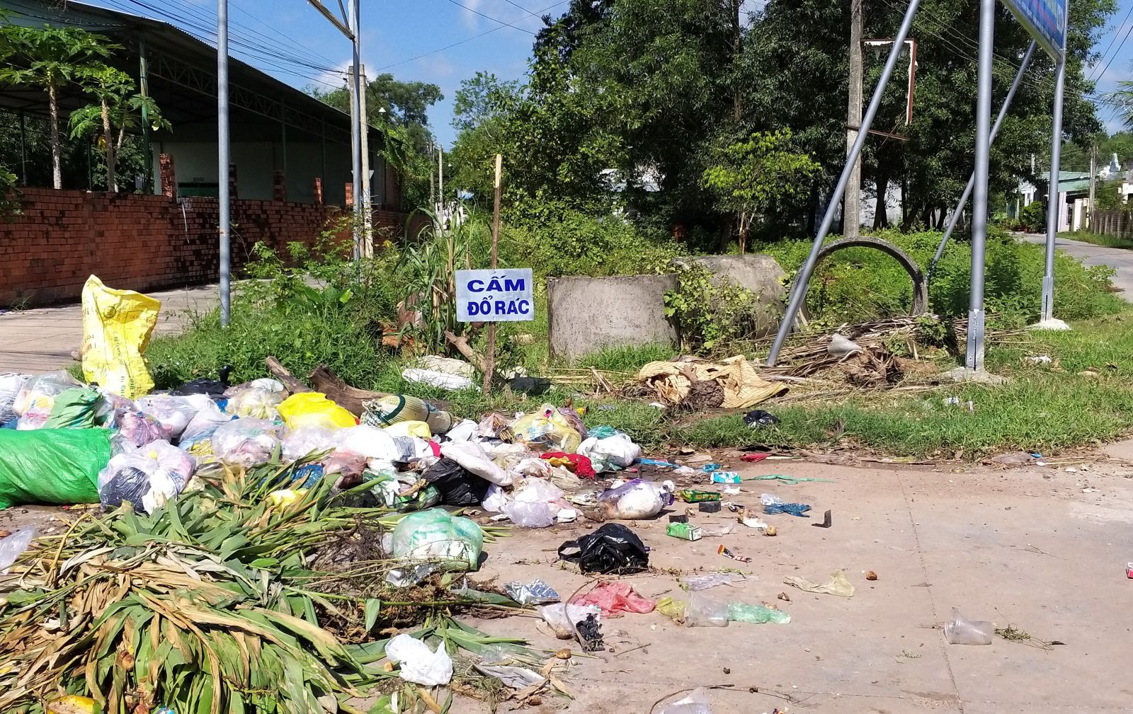 Dù có bảng cấm đổ rác nhưng nhiều người vẫn mang rác thải sinh hoạt đến vứt tại trước hẻm số 5 đường Trần Văn Trà, xã Bình Minh, thành phố Tây Ninh.