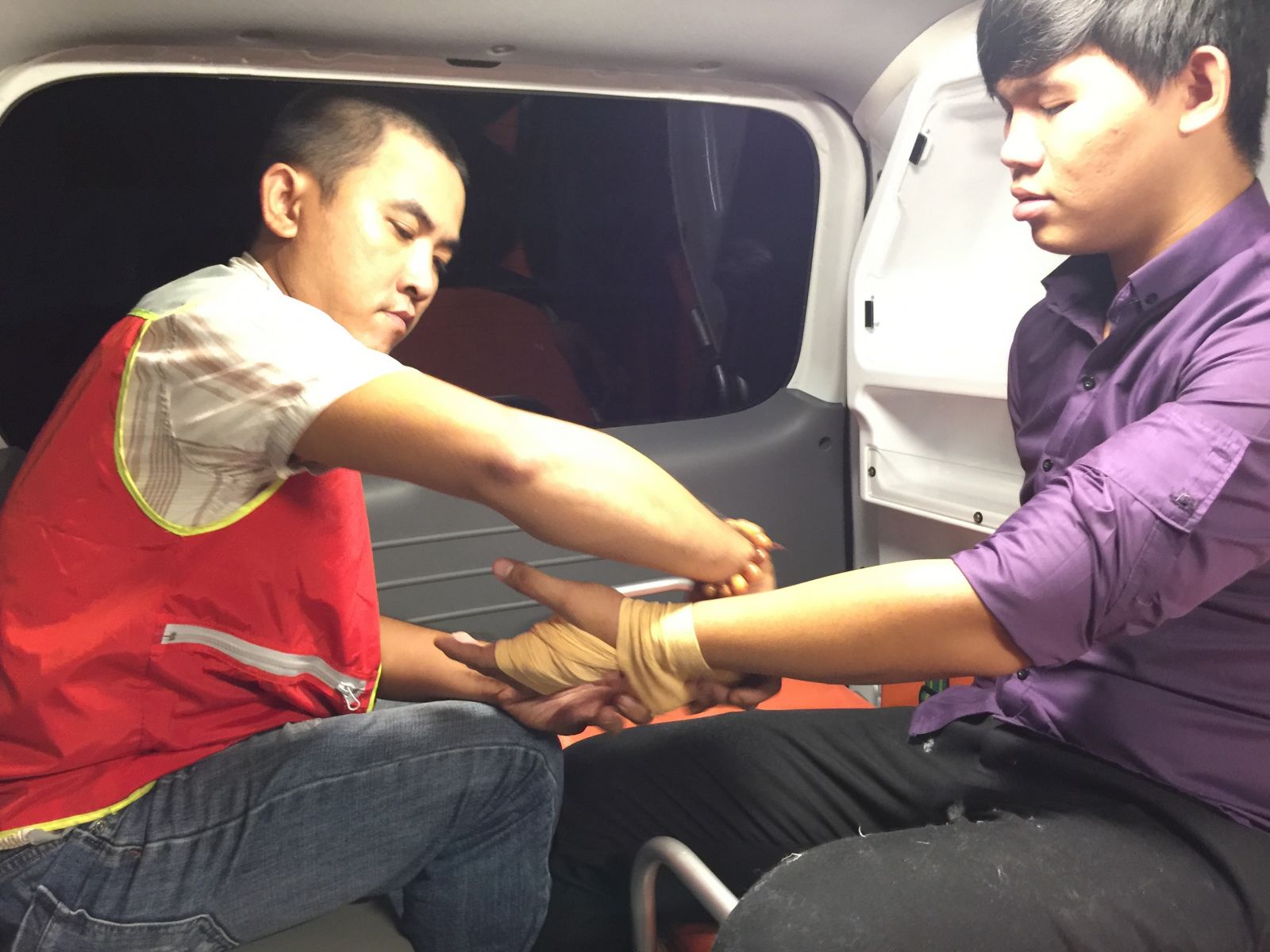Anh Phước tham gia sơ cứu cho người bị tai nạn giao thông.