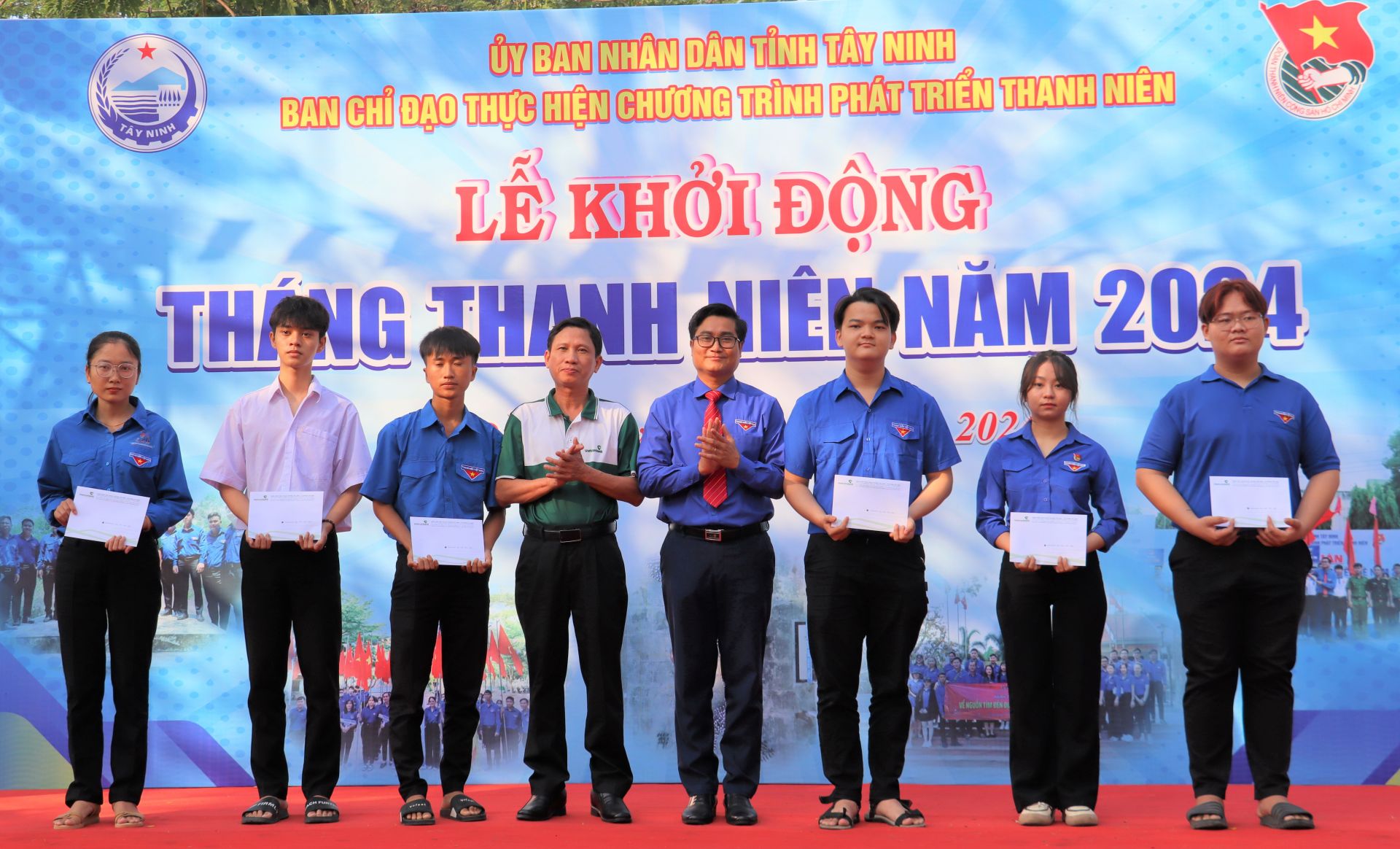 Tỉnh đoàn và nhà tài trợ Ngân hàng Vietcombank chi nhánh Tây Ninh trao học bổng cho sinh viên cho hoàn cảnh khó khăn.