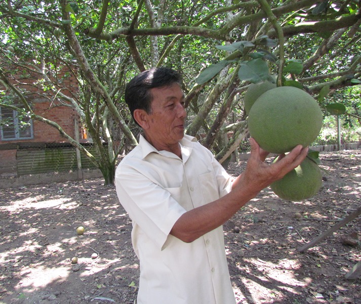 Ông Sang chăm sóc bưởi da xanh.