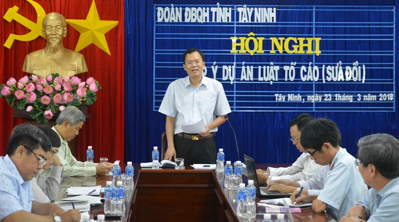 Hội nghị góp ý Luật Tố cáo (sửa đổi) được Đoàn ĐBQH đơn vị tỉnh Tây Ninh tổ chức vào sáng 23.3, do ông Huỳnh Thanh Phương- Phó trưởng Đoàn chuyên trách chủ trì hội nghị. Dự hội nghị có đại diện lãnh đạo các sở, ngành liên quan.