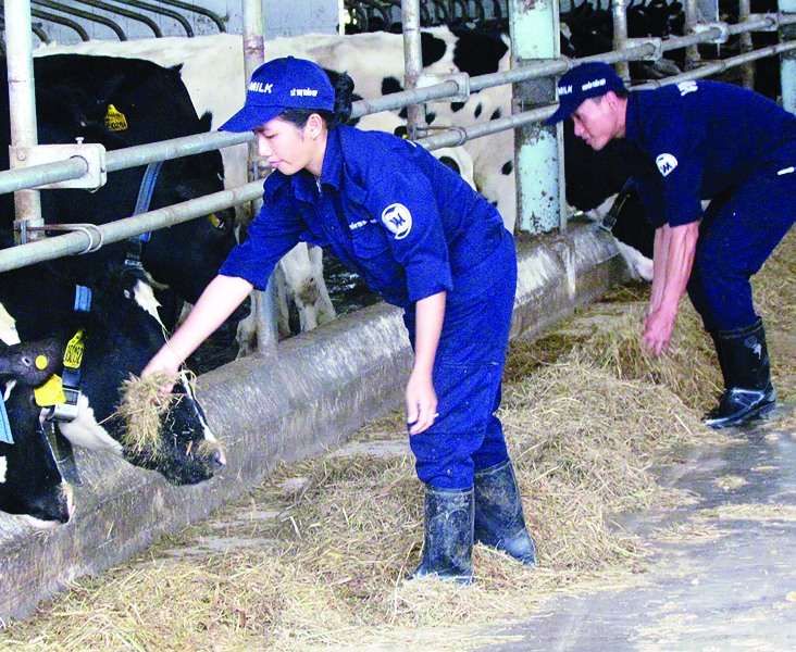 Nhân viên Trang trại Bò sữa Tây Ninh chăm sóc đàn bò.